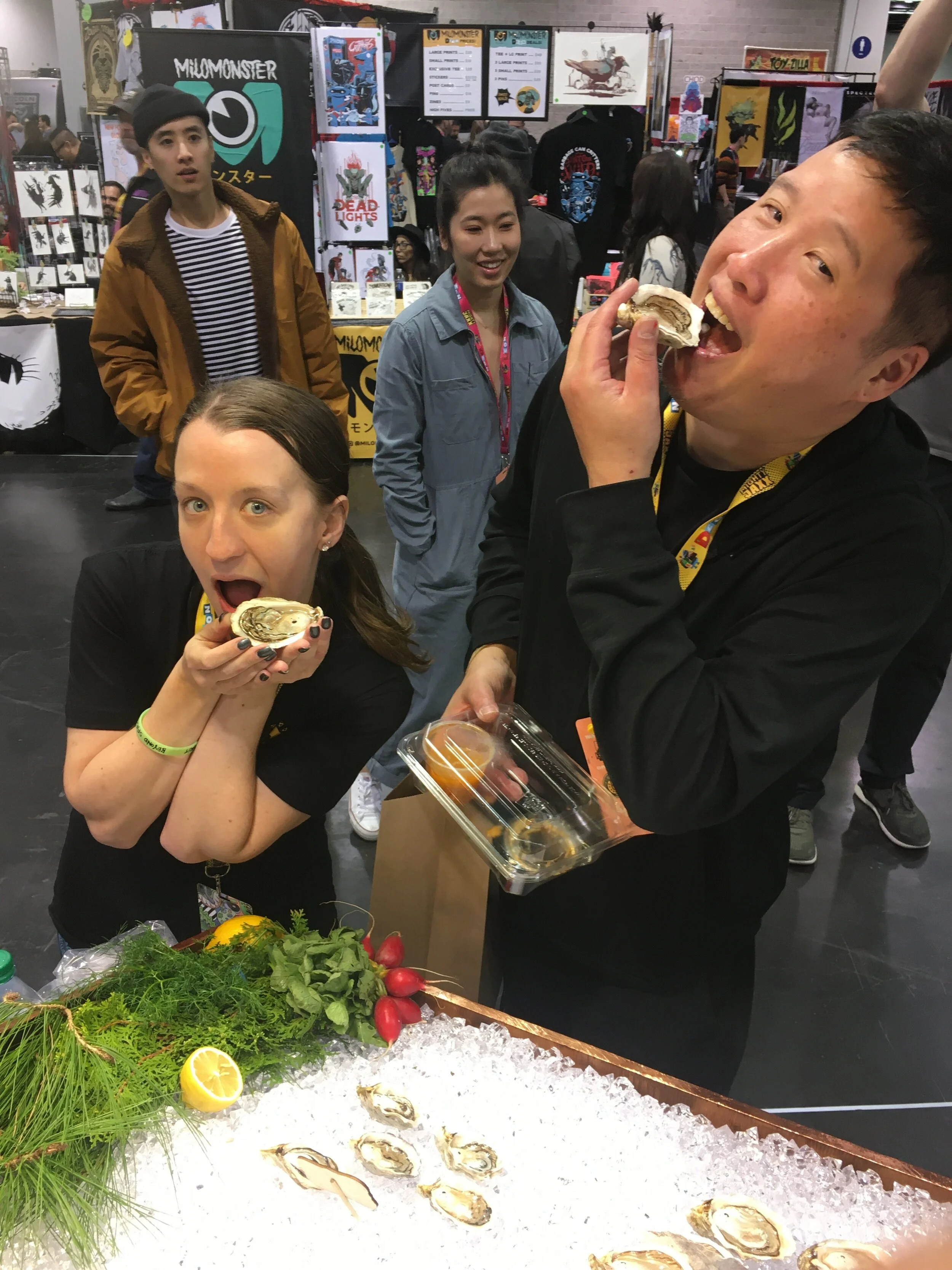Babe Oyoyster, Never Salty T-shirts and Pink Oyoyster Pins were part of my merch.